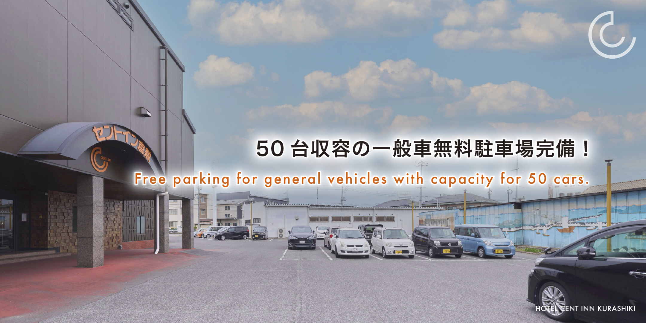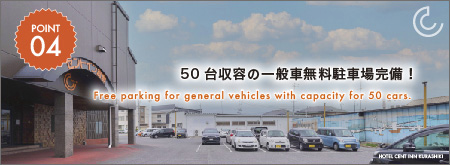 50台収容の一般車無料駐車場完備!